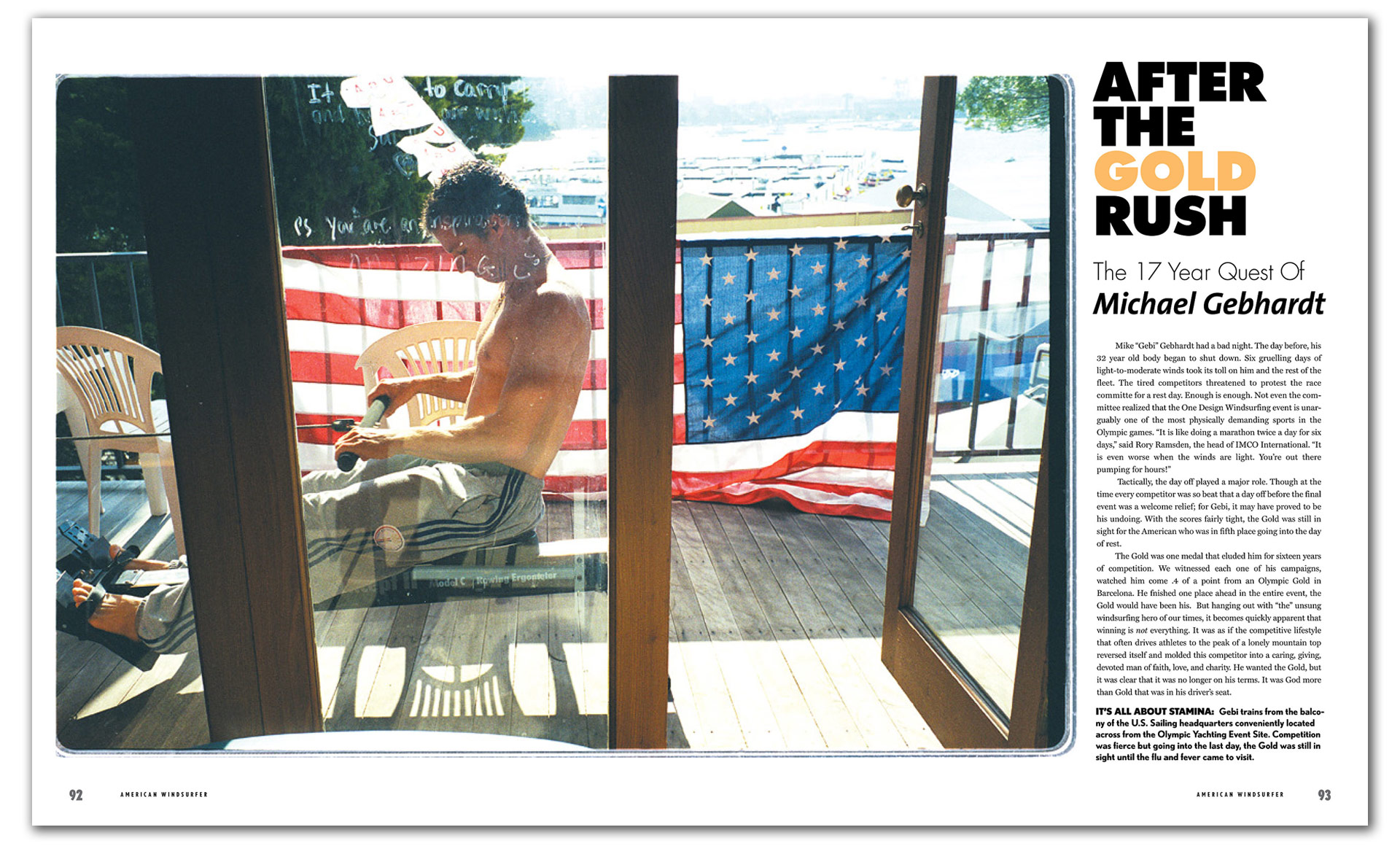 The Gold was one medal that eluded him for sixteen years of competition. We witnessed each one of his campaigns, watched him come .4 of a point from an Olympic Gold in Barcelona. He finished one place ahead in the entire event, the Gold would have been his.But hanging out with “the” unsung windsurfing hero of our times, it becomes quickly apparent that winning is not everything. It was as if the competitive lifestyle that often drives athletes to the peak of a lonely mountain top reversed itself and molded this competitor into a caring, giving, devoted man of faith, love, and charity. He wanted the Gold, but it was clear that it was no longer on his terms. It was God more than Gold that was in his driver’s seat.