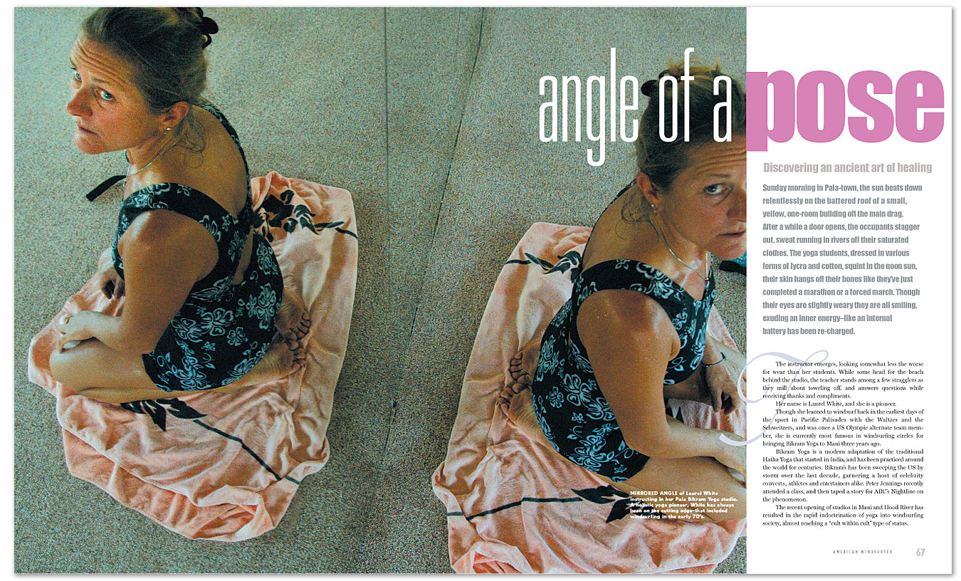 “Bikram’s was my saving grace,” says instructor Dannette Waltze, former wife of windsurfing pioneer Mike Waltze. She had been doing other forms of yoga for 16 years, but finally found her rhythm with Bikram’s. She started taking classes when White first opened in Maui, and finally went to teacher training in Los Angeles last spring.