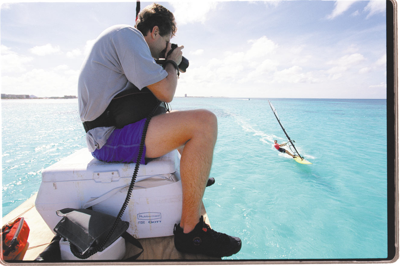 The brilliant photographs you see in this issue did not come easy. Our senior staff photographer, Darrell Jones, spent hours everyday sitting on top of a scaffold to capture these Kodak moments. This was only after painstakingly erecting the scaffold out on the reef’s spectacular vantage point. Behind every picture there are countless hours of preparation and refinement. We certainly have the best in the business perched on the scaffold snapping away at our team of testers, which included Technical Editor Ken Winner, Instructional Editor Mark Archer, Equipment Manager Glenn Fuller. A bunch of guest testers with notables such as Nevin Sayre, Kent Marinkovic and Roger Jurriens also got in the way of the camera.