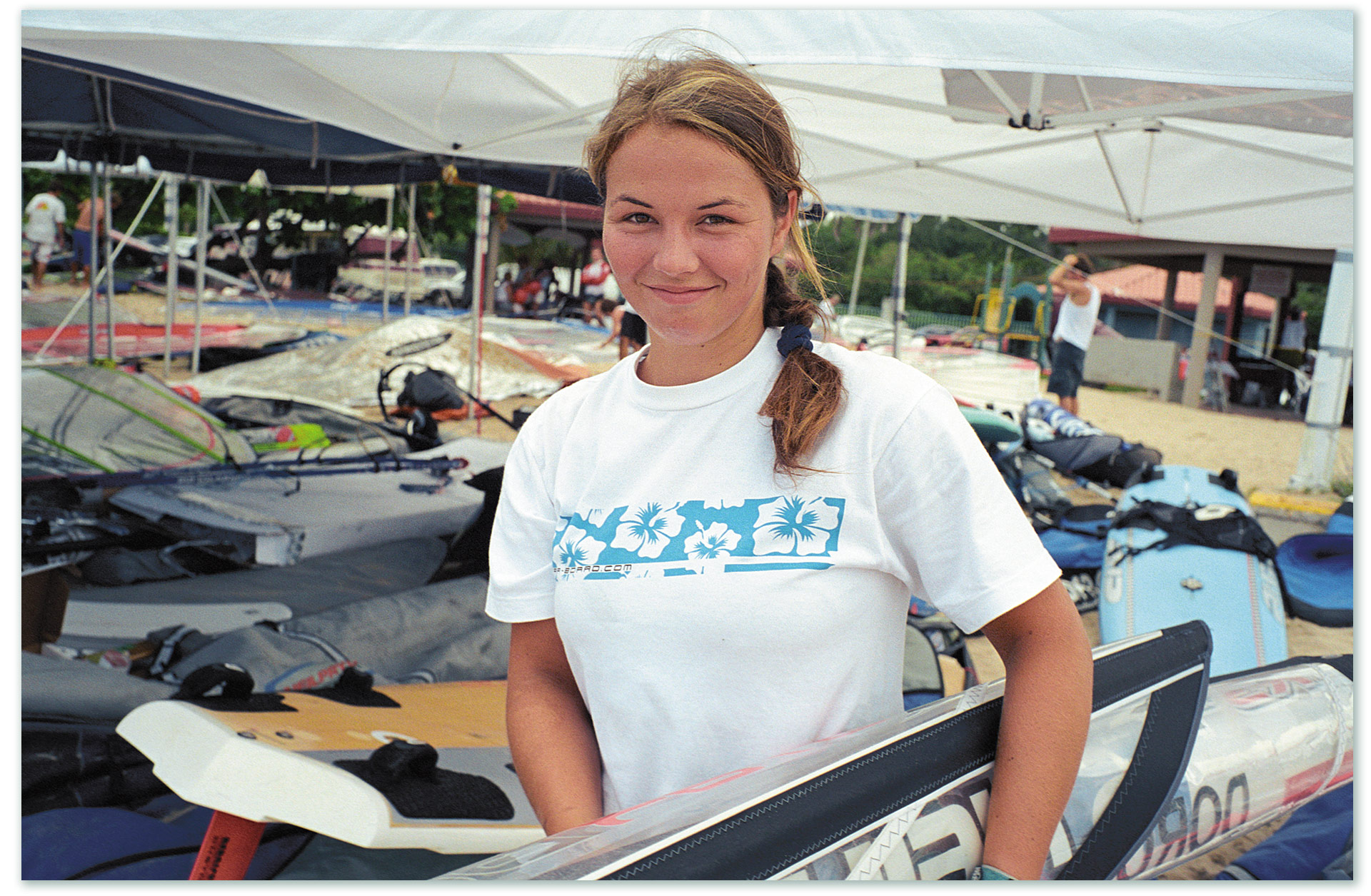 I wasn’t afraid of storms or wind, just afraid of my dad on the beach. When I was little I thought my father was very aggressive and strong and I was afraid of him. Suddenly it all changed. With my first international competition in ‘91 when I was twelve, I got second in Junior Aloha Class and that really motivated me so much that I started my training. I was delighted not just by the results but the whole idea—competition, trips to different countries, the philosophy of living, and the lifestyle. All through the years there were ups and downs. I did the Olympics in Atlanta in Mistral Olympic Class and got sixth place there. I was very happy. Of course there was work, sacrifice, but the most important thing in my case is relations with my parents. It was not financial support, only a little bit, but very strong emotional confidence they gave me. This is very important in an athlete’s life.