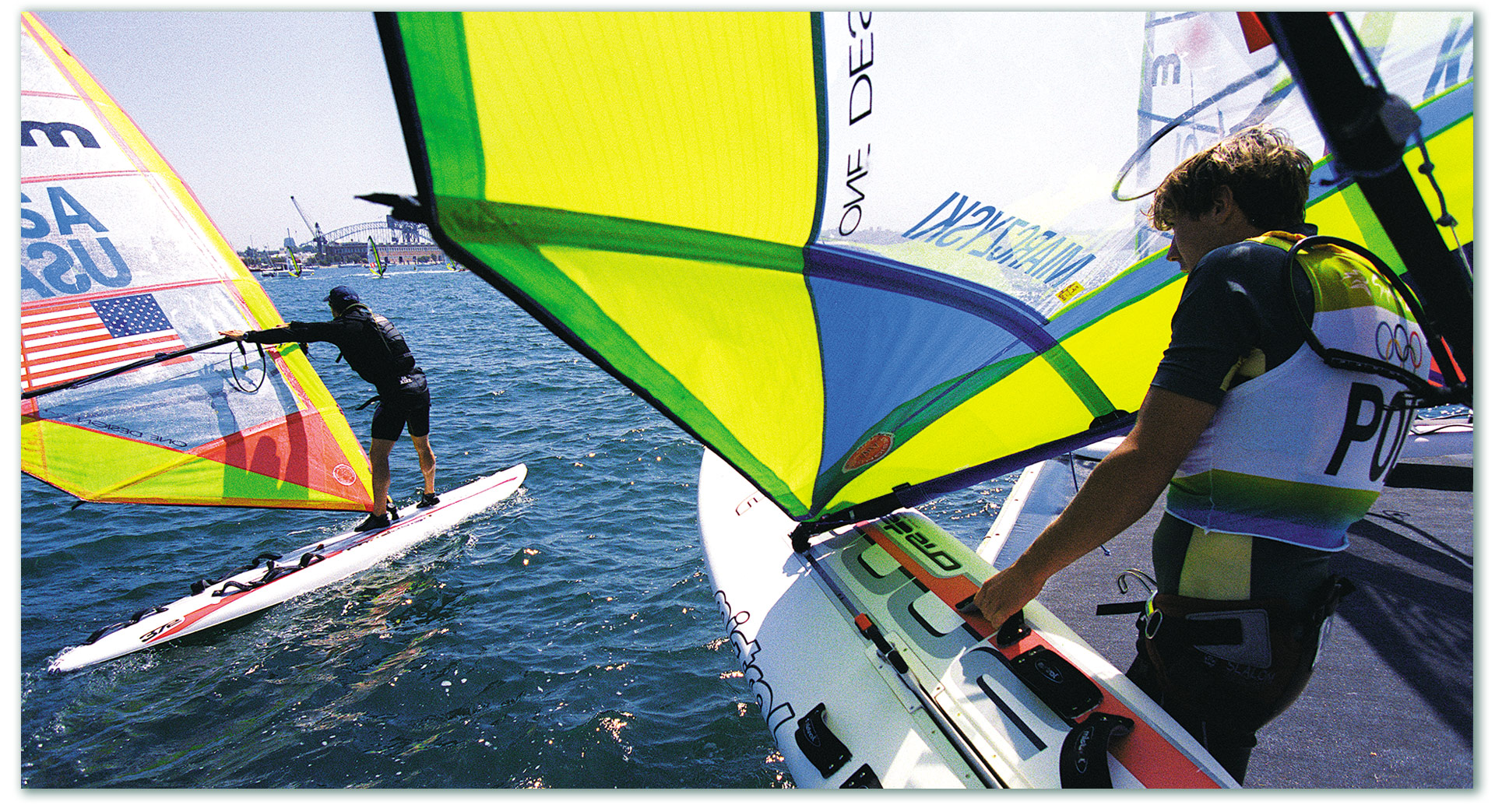 THE 2000 OLYMPICS WINDSURFING REGATTA was the best ever. The sport reached its pinnacle. Not only was it the best ever Olympic windsurfing event, it was alive with many “never befores”. Never before were the fleets so right. Never before was the competition so high. Never before did spectators wait on the edge of their seats ’til the very last race to the very last mark in anticipation of knowing the winners. Never before in Olympic sailing history was a medal, and a Gold one at that, awarded on a count back after a tie. Never before was an entire race shown live on national TV with overall media interest intent throughout the regatta from the first day to the last. Never before did One Design equipment prove to be so right.