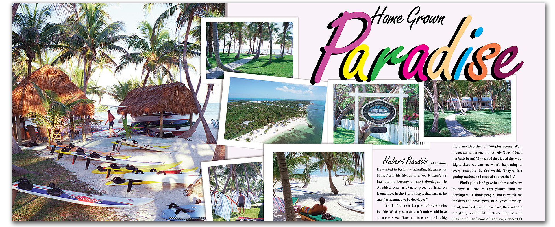 HUBERT BAUDOIN had a vision. He wanted to build a windsurfing hideaway for himself and his friends to enjoy. It wasn’t his intention to become a resort developer. He stumbled onto a 17-acre piece of land on Islamorada, in the Florida Keys, that was, as he says, “condemned to be developed.”