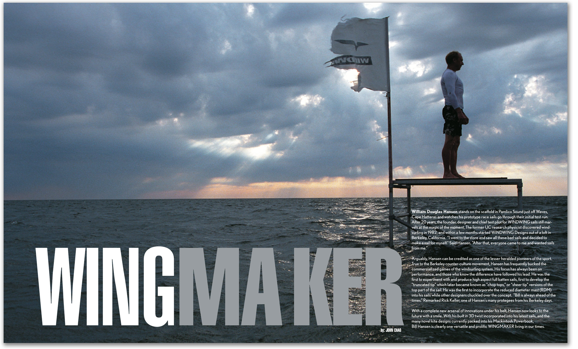 On another note, thanks so much for squeezing the article in. It looks great! Also, thanks for such a fantastic magazine. For a couple years women have called and emailed me about their complaints with magazine coverage for women’s interests in windsurfing. On behalf of the NW branch of the windsurfing community, this magazine edition is so appreciated. It is uplifting, shows women’s involvement in many aspects of the sport, and gives us dignity as a group. I also noticed the limited number of ads which is a great sacrifice to a magazine. Additionally, I noticed that the only picture in an ad of a person on a “beginner” board was a man at the back of the magazine indicating to men that it is ok to be seen having fun on a Kazoo. I especially appreciate the lack of ads of women with butt-crack bikinis looking like hookers (although I haven’t ever noticed this in AW, I have seen it in many other water-sport mags).