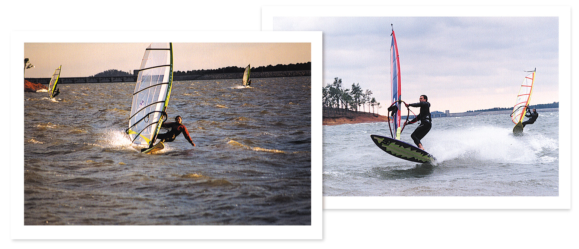 Then, in the Nineties during the middle of my life along came the article about windsurfers ripping at the lake only minutes from my home. I acted on it and it set off a cascade of events. I had to face it—it was time to grow up to what I wanted to be. I took the lesson and that was it. I decided to be a windsurfer.