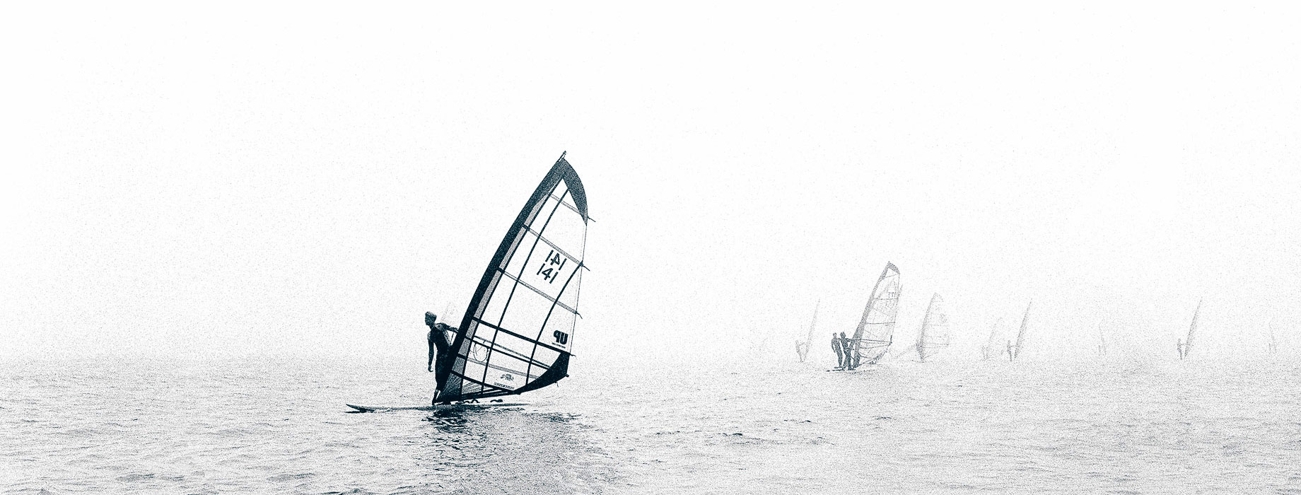 If you are on a beginner level there’s no shortage of new things to learn. As an expert, you need to become creative. Let’s say you’re able to do a 360° with a short board. How about doing the 360° sailing backwards with the fin in front of you? And to increase the challenge, do it standing on the leeward side of the sail? With this maneuver, you’ll definitely break your daily routine! Just some hints how you can do it. Start on a beam reach, luff up until you sail into the wind. Now, briefly pull the sail back over the centerline. With the sail empty of wind, push it to windward with your sail hand. You are now sailing on the leeward side with the face towards the wind. Now you turn yourself backwards and with a step to the bow, turn the sail 180° with the clew towards the bow. You’re now sailing in a normal position, but backwards. The board will turn immediately into the wind and then you are in the right position to start the “360°-backwards-on the leeward side” Just watch what’s going on.The board will do the move more or less by itself.You just have to keep your attention on the balance.